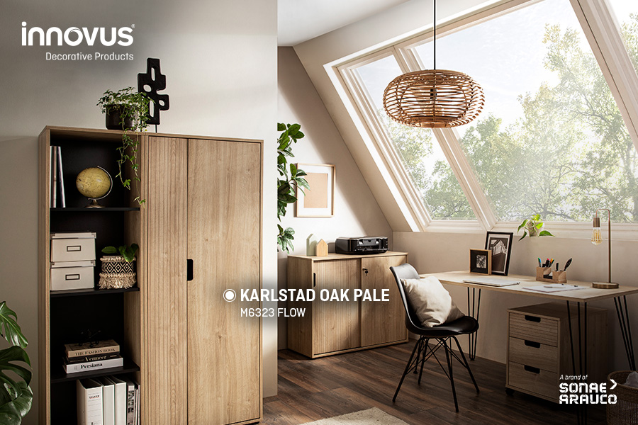 und ressourcenschonende Produktion. Für die neue Möbelserie Emmik (Diele, Bad, Homeoffice) kommt das Dekor Karlstad Oak Pale