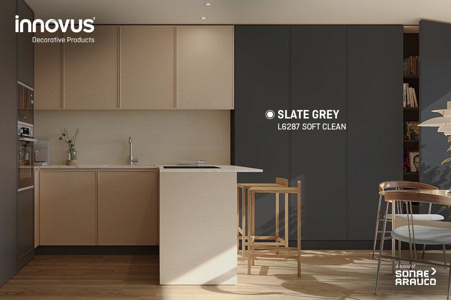Von natürlichem Schiefer inspiriert, vereint dieser zeitlose Grauton Ruhe, Eleganz und gestalterische Vielseitigkeit. Slate Grey (L6287) fügt