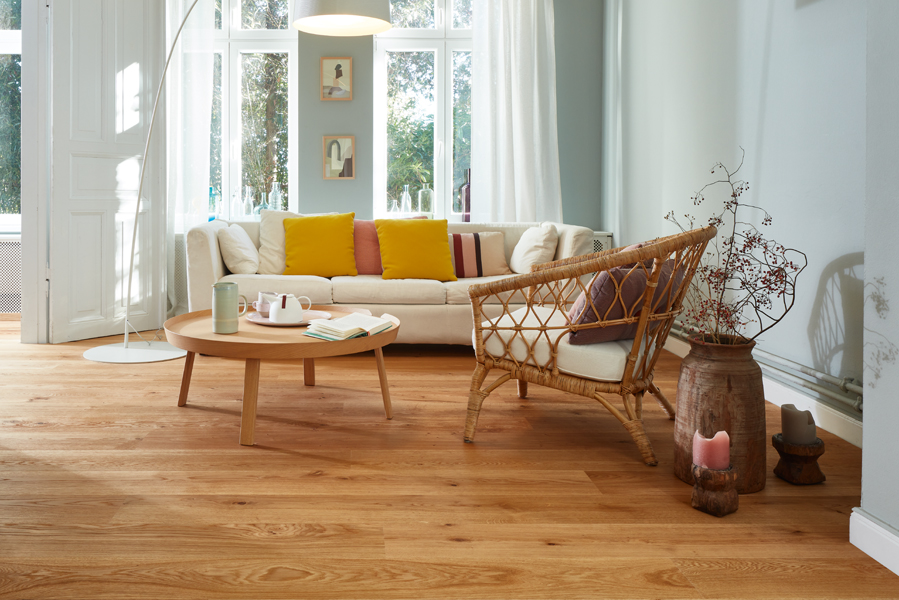 Alle Böden der Kollektion sind mit dem Naturöl Live Natural behandelt und bilden eine wohnfertige Oberfläche für den vollen Schutz auf natürlicher Basis.